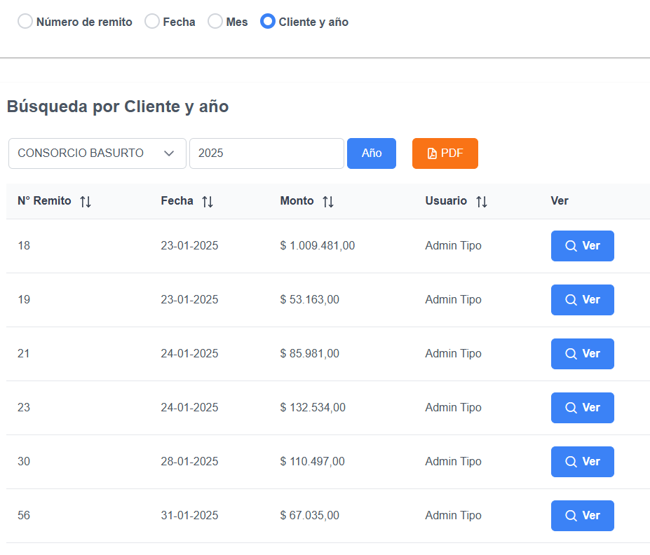 En modo tabla, gráfico de barras o de líneas, con datos exportables a PDF