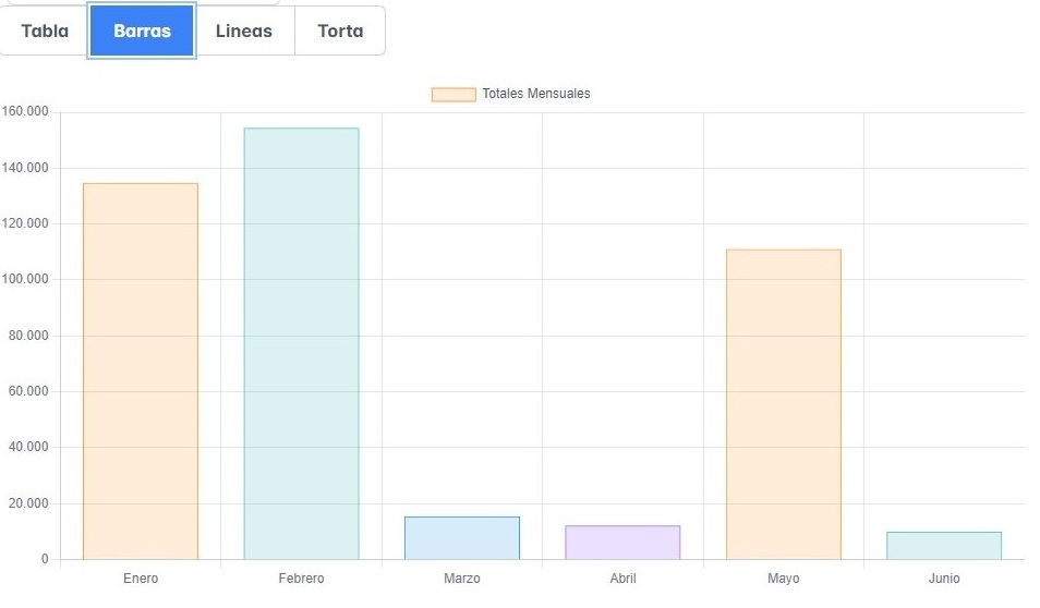 En modo tabla, gráfico de barras o de líneas, con datos exportables a PDF